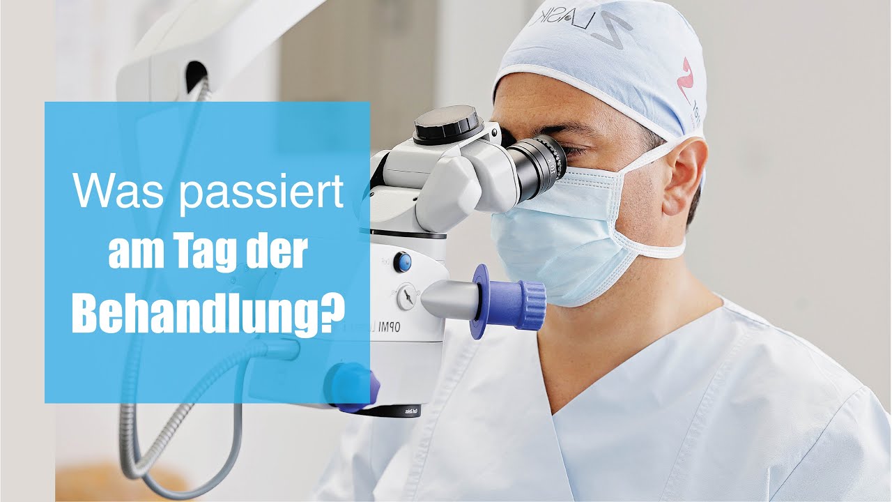 Am Tag der Augenlaser Behandlung kommt der Patient üblicherweise 20 bis 30 Minuten vor dem Eingriff zu uns. Wir gehen nochmals alle Dokumente, Einverständniserklärungen durch. Es wird nochmals der Tropfplan erklärt. Man erklärt dem Patienten wie er sich unmittelbar nach der Operation verhalten soll. Anschließend werden sie in den OP-Saal geführt. Dort bespricht noch der Chirurg die exakten Schritte des Eingriffes mit dem Patienten durch.